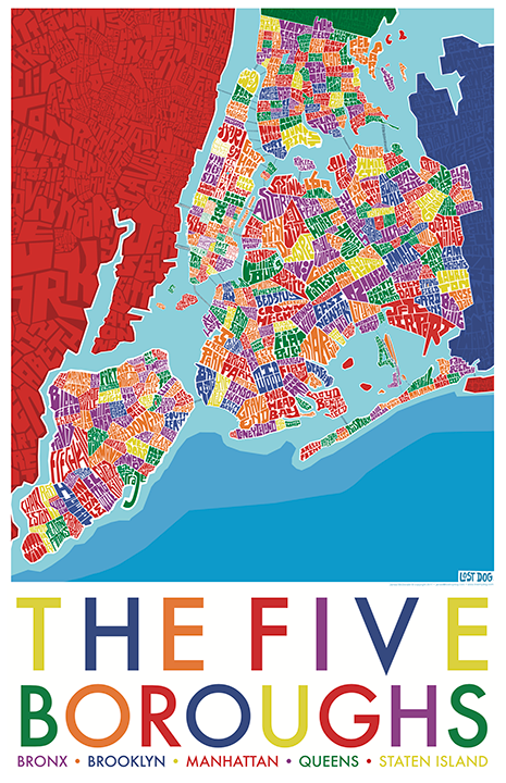Boroughs of New York City Map, Five Boroughs Map Print, New York