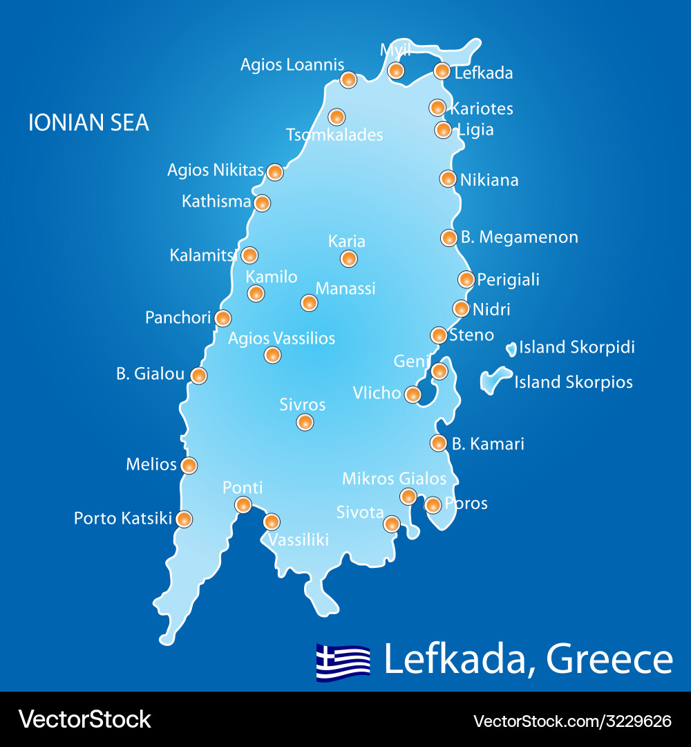 Island of lefkada in greece map Royalty Free Vector Image