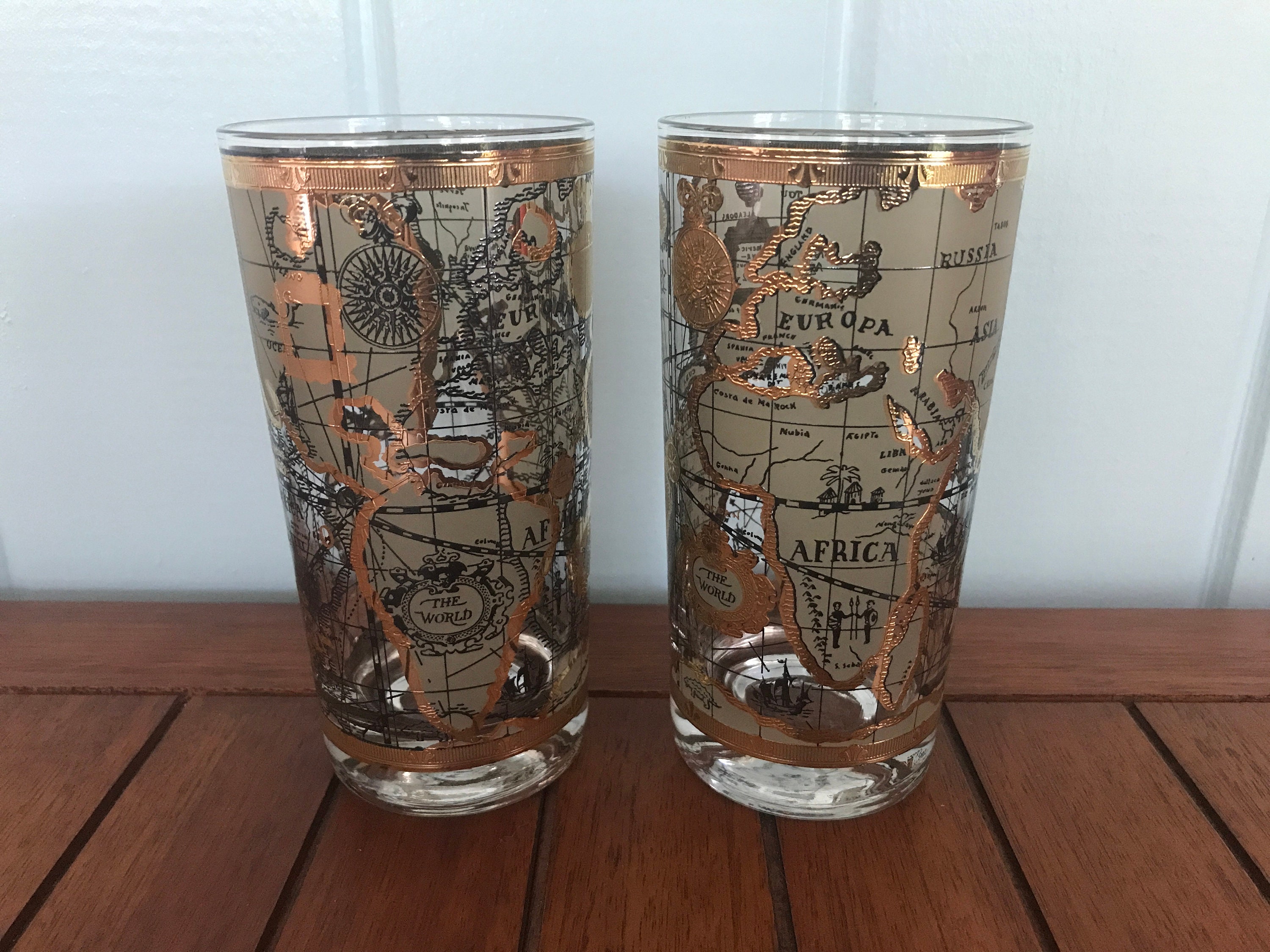 Two Cera Glass Maps Glasses Atlas/globe/world Map Highball