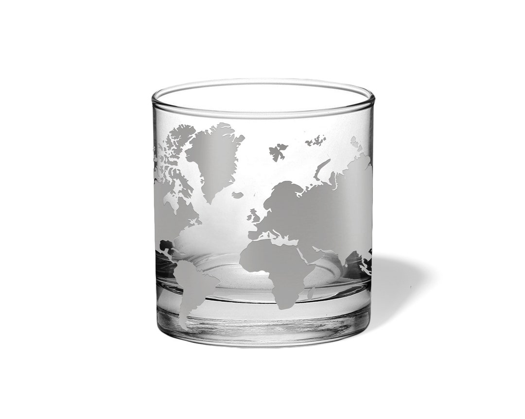 Map of the World Engraved Whiskey Rocks Glasses Wanderlust Gifts